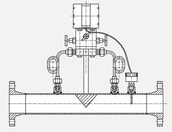 3、 水平安裝時,楔式差壓元件應與管道中心線成90度。對于垂直安裝,由于取壓點之間輕微的靜壓影響必須注意差壓變送器調零楔形流量計上游側最小直管段